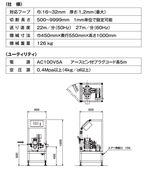 送り速度:22m/分(50Hz)、27m/分(60Hz)